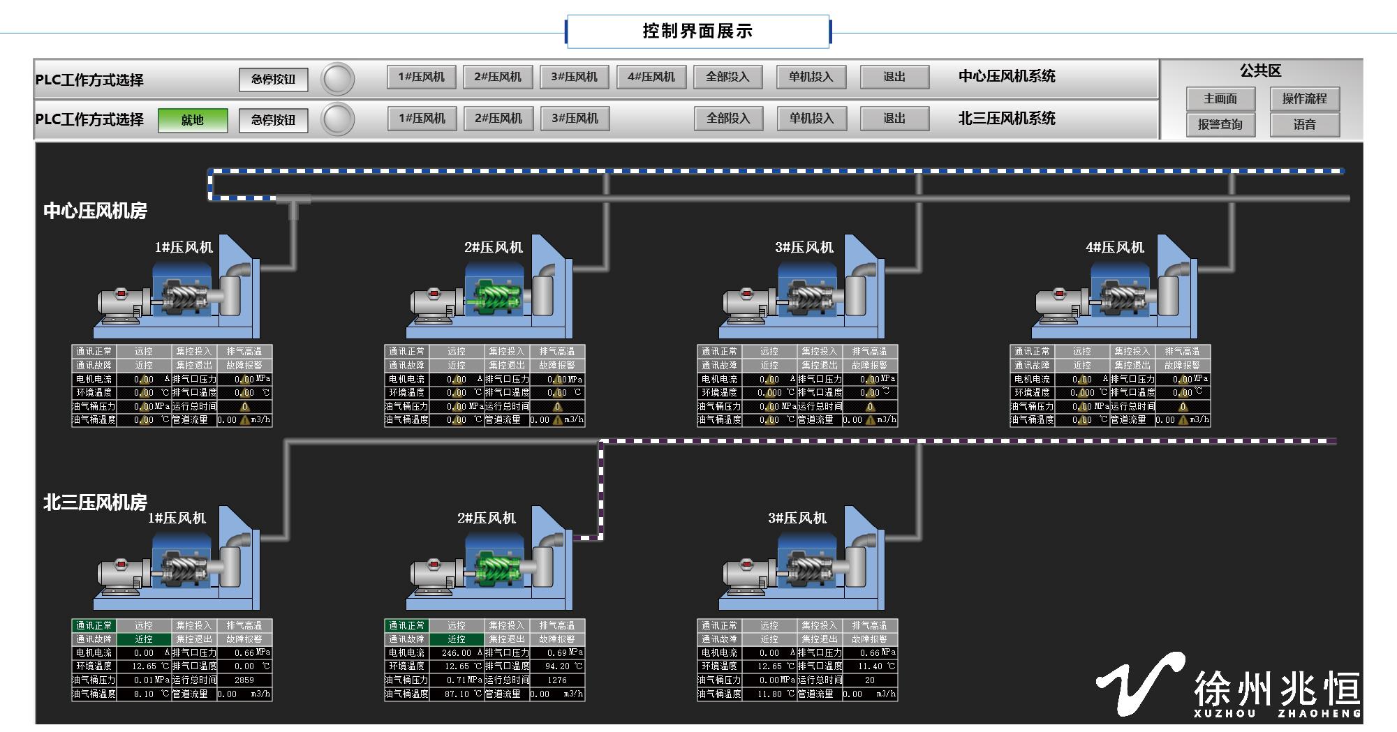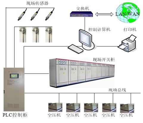 根據壓風系統對穩定性和實用性的要求,本系統采用觸摸屏和工業計算機作為人機交互的載體;采用專門數據歸檔服務器進行數據存儲;使用西門子S7-1200系列PLC作為信號采集和處理的工具,實現了壓風系統的聯機運行、能效優化、故障診斷等。