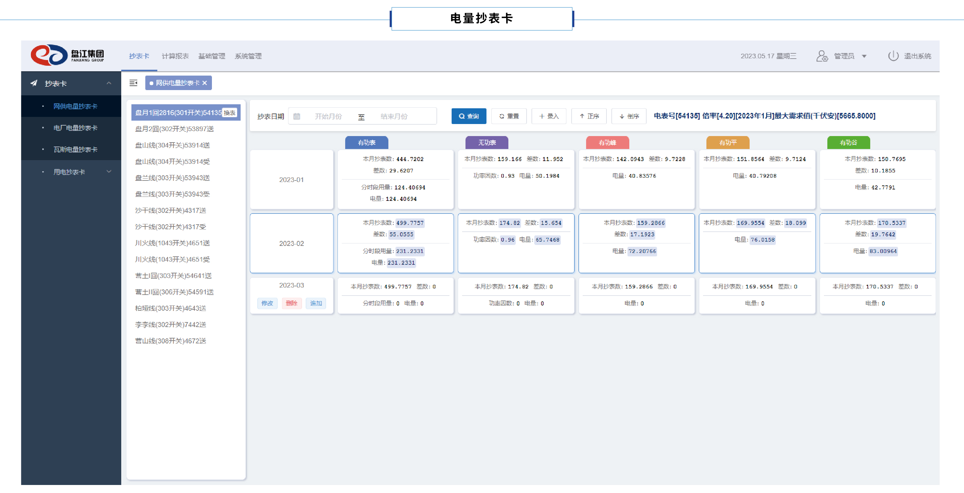 1、電量電費數據計算可以通過在線采集智能電表方式獲取數據或離線數據錄入,對一表多戶、計量誤差、線損等情況完成數據修正功能,對有功電量、無功電量、有功峰、平、谷電量、功率因數、力率調整值等關鍵數據進行智能計算,實現電量、電費的自動計算。