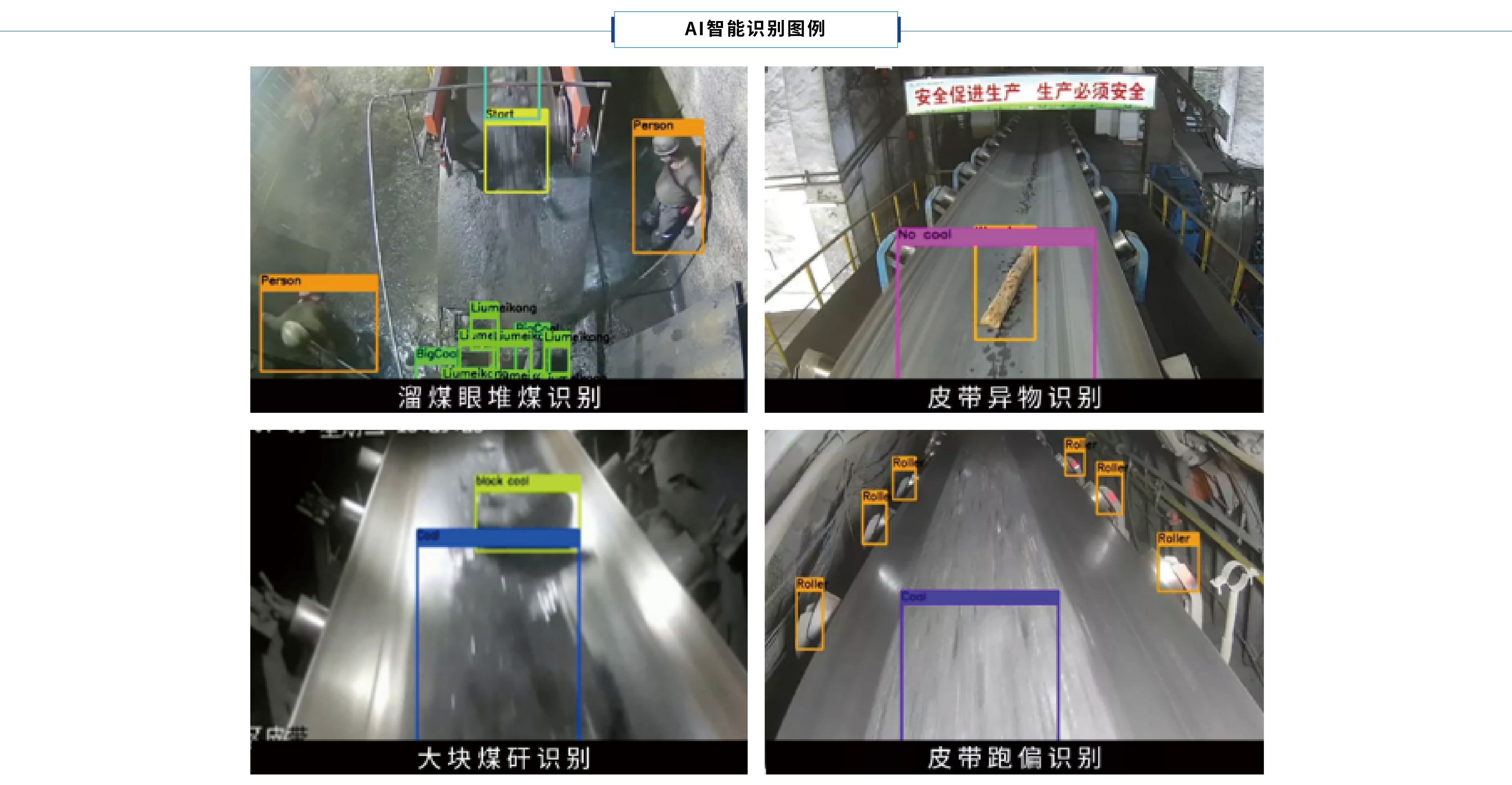 4)利用AI視頻技術,實現煤流量、異物、人員行為、堆煤、跑偏、撕裂的識別、抓拍和報警。